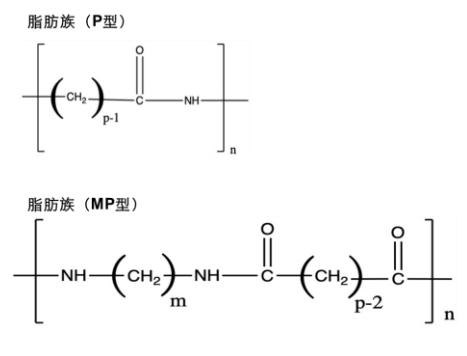 PA12、PA612和PA1012同屬于脂肪族尼龍,PA12屬于脂肪族尼龍中的P型,PA612和PA1012屬于脂肪族尼龍中的MP型。P型脂肪族尼龍通過氨基酸或內(nèi)酰胺開環(huán)聚合,p代表單體碳鏈上的碳原子